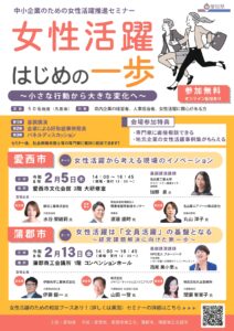 2026年2月8日に開催される愛知県主催の女性活躍推進セミナーに社長が登壇いたします。 参加費無料、オンライン配信もありますので是非ご参加ください。